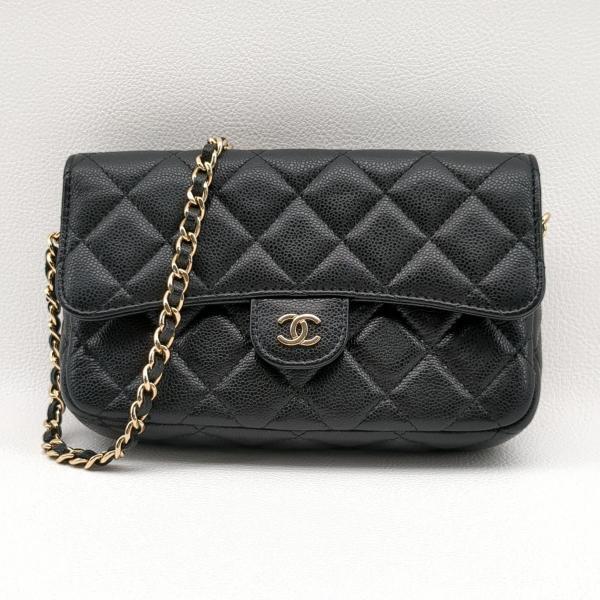 > シャネル ショルダーバッグ AP2096 マトラッセ ブラック キャビアスキン チェーンウォレット CHANEL ◆2006