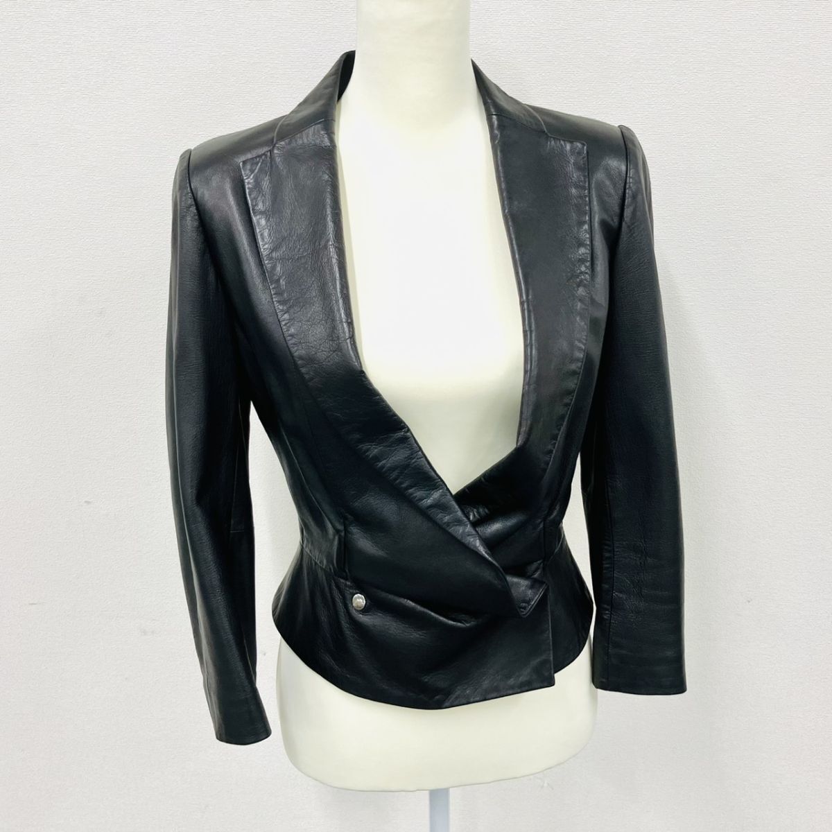 - S080-Z22-514 Calvin Klein カルバンクライン サイズ4 ラムレザー 羊革 382-5.CJK.YP KA.0200 レディース Mサイズ Vネック ジャケット SA