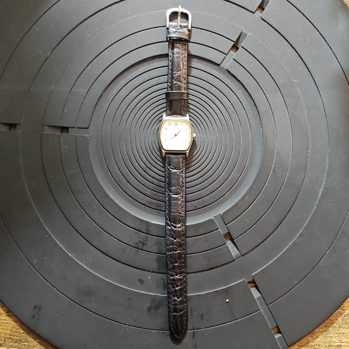 - 100614 日本古風堂 FREE WAY フリーフェイ ホワイト文字盤 アラビア数字 レザーベルト 稼動品