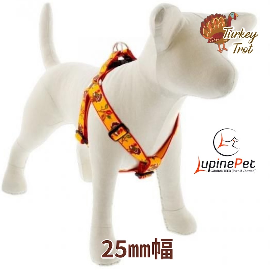 > ステップインハーネス・XLサイズ 25mm幅 ターキートロット柄Turky Trot 60-96cm LUPINEルパイン アメリカ製 軽量 丈夫 大型犬