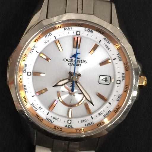 - カシオ オシアナス デイト マルチバンド6 タフソーラー 腕時計 OCW-S340 レディース ホワイト文字盤 CASIO