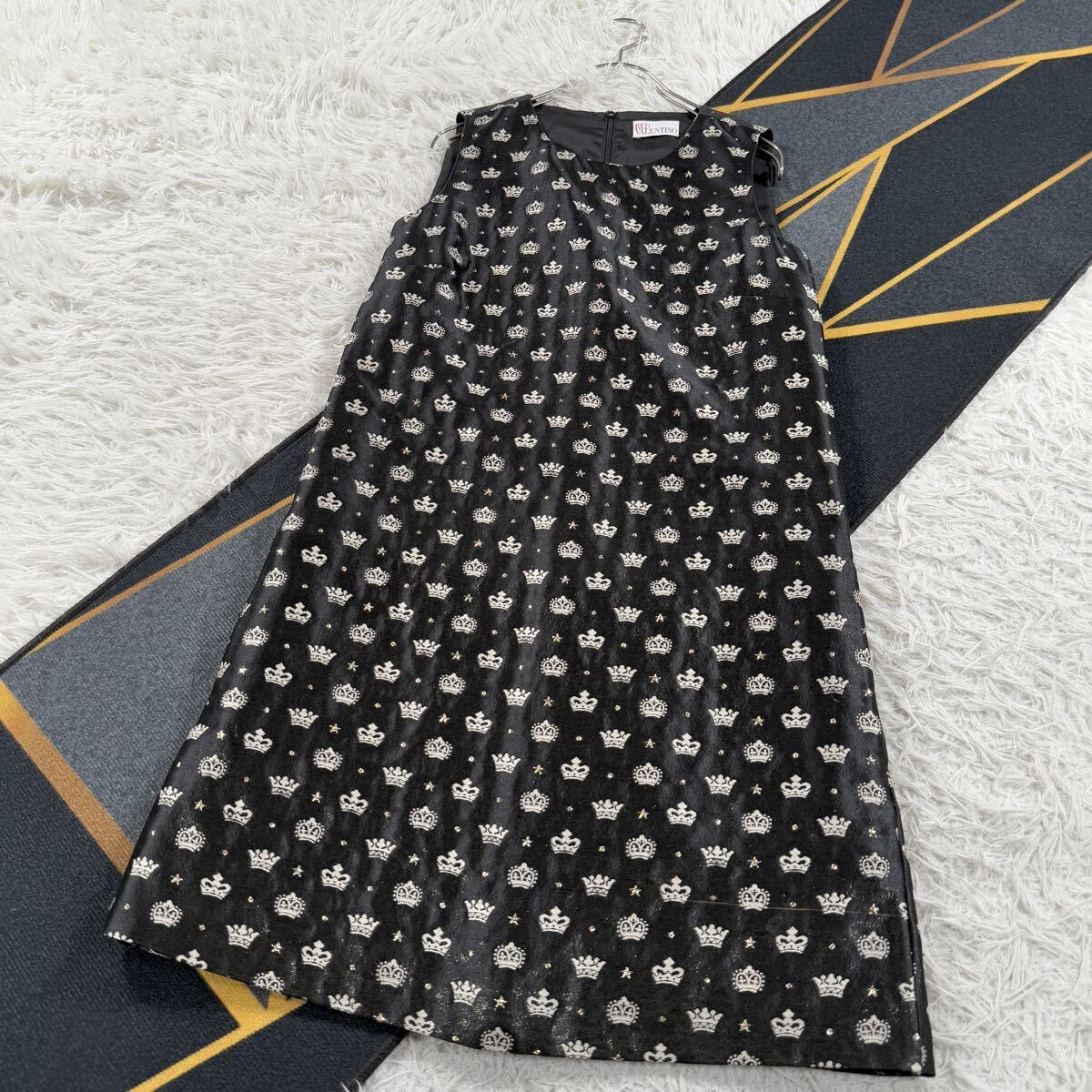 - RED VALENTINO/レッドヴァレンティノ ワンピース ノースリーブ 総柄 王冠 星柄 黒 ブラック
