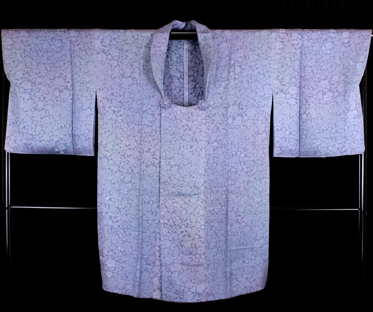 やわらかな色調と上品な地紋が魅力的な、唐草文様の道行コートのご紹介です。