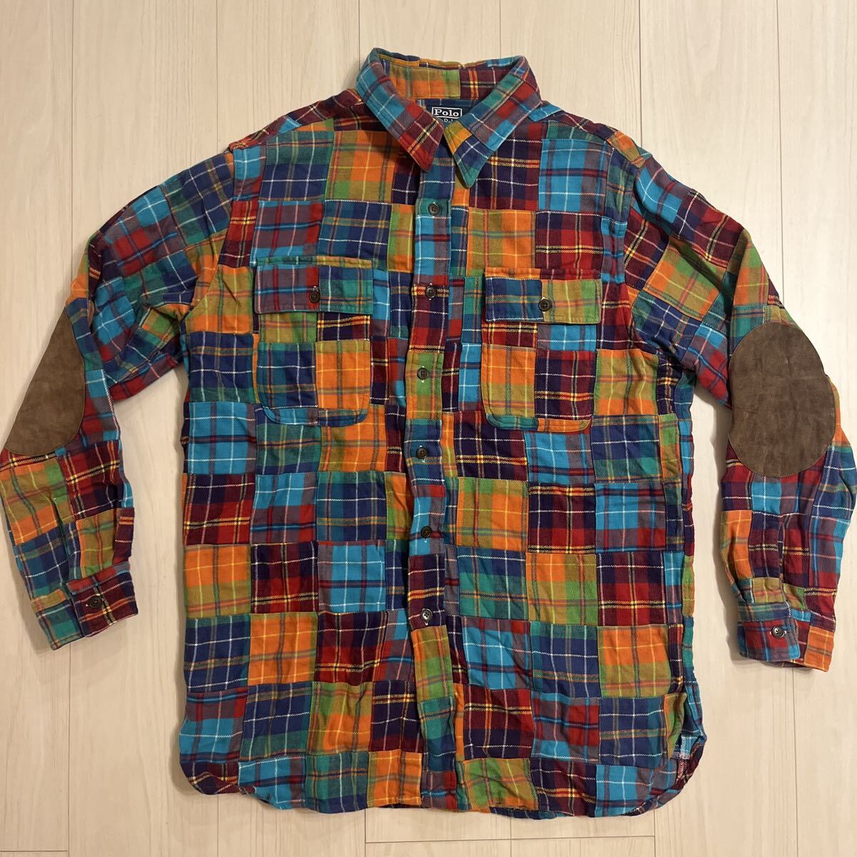 - 1円スタート Polo Ralph Lauren ポロ ラルフローレン CARRINGTON キャリントン 長袖シャツ パッチワーク ネルシャツ Lサイズ メンズ古着