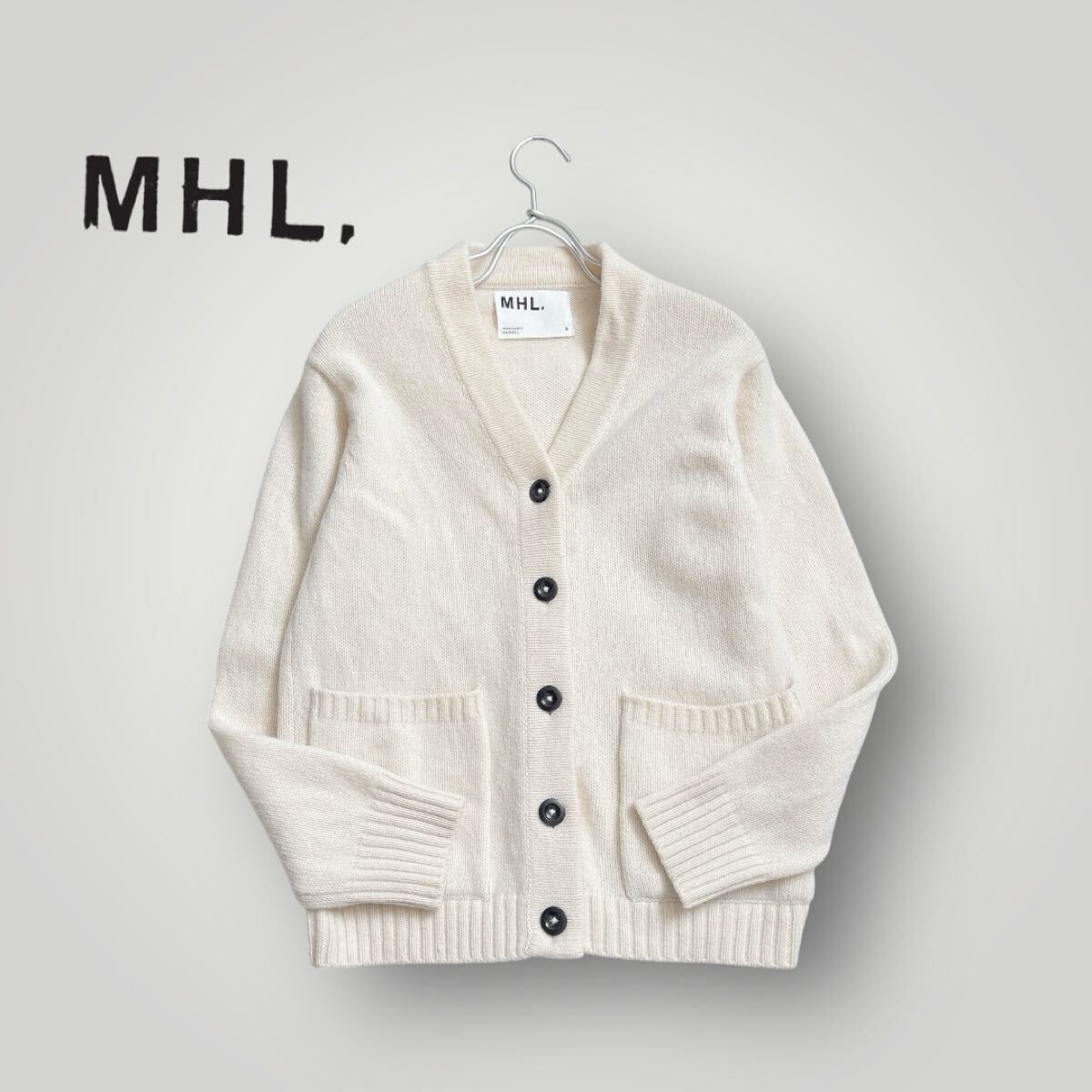 - MHL エムエイチエル MARGARET HOWELL 長袖 ウールカーディガン サイズ2 オフホワイト