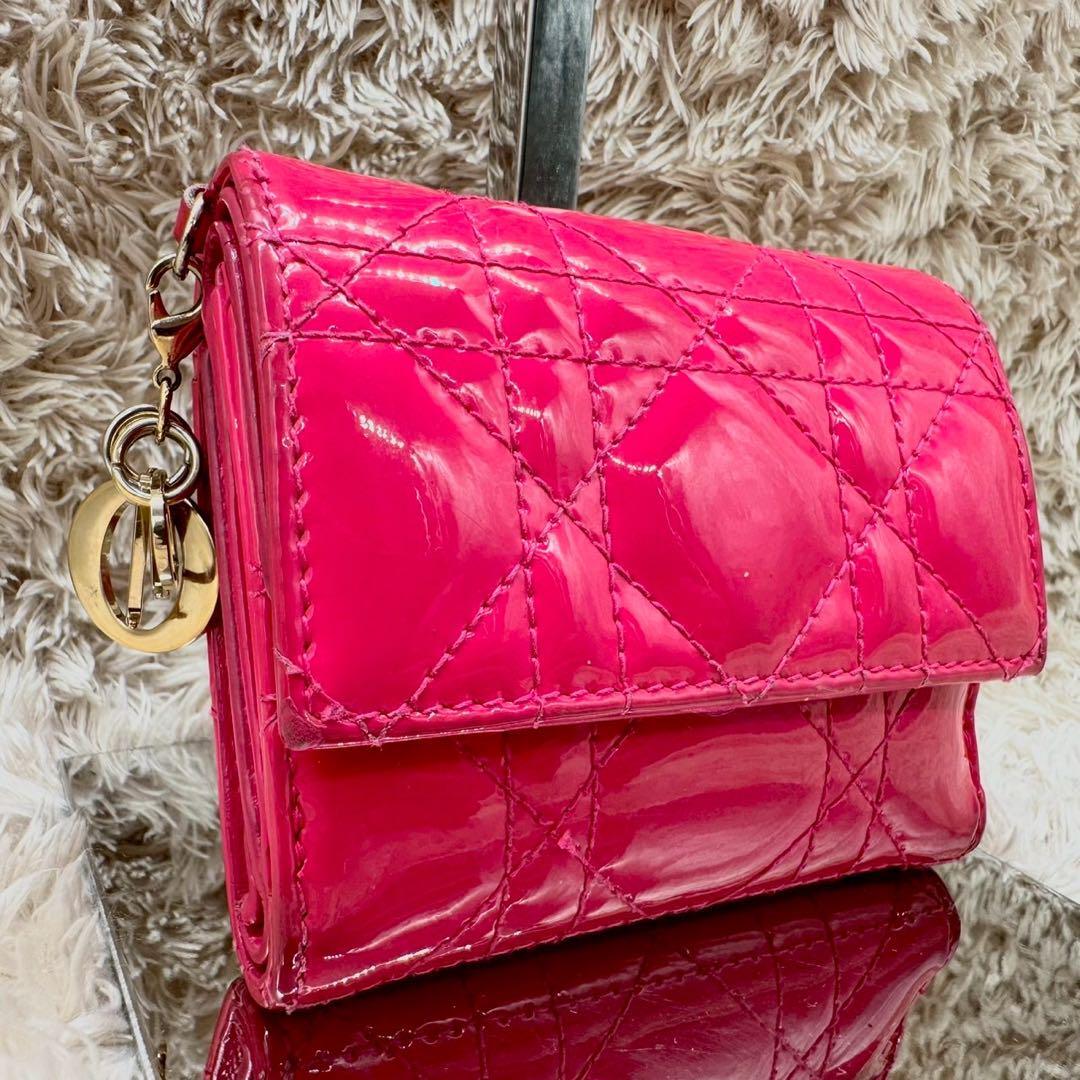 - 【美品】Christian Dior クリスチャンディオール 三つ折り財布 ピンク カナージュ パテント レディース レザー 本革 コンパクトウォレット