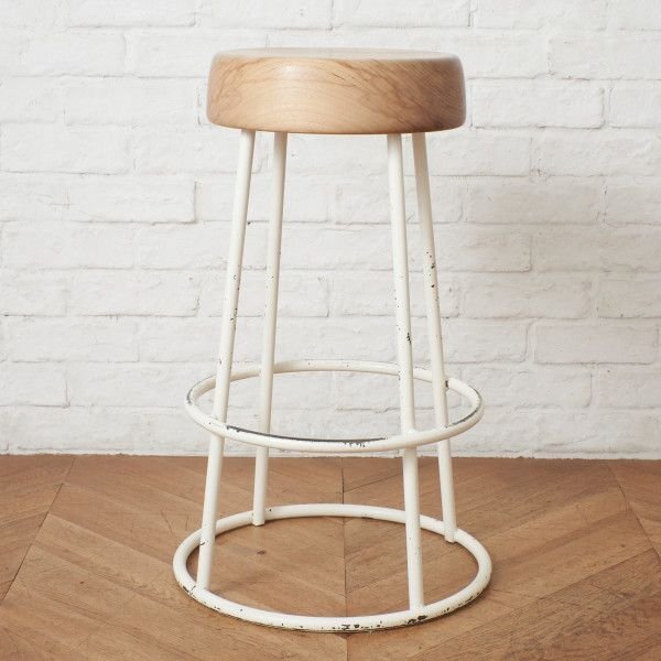 - IZ95311F★作家物 盛永省治 カウンターチェア 無垢材 鉄脚 ハイスツール ハイチェア 木製 椅子 チェア 工房 ナチュラル クラフト 木工 作家