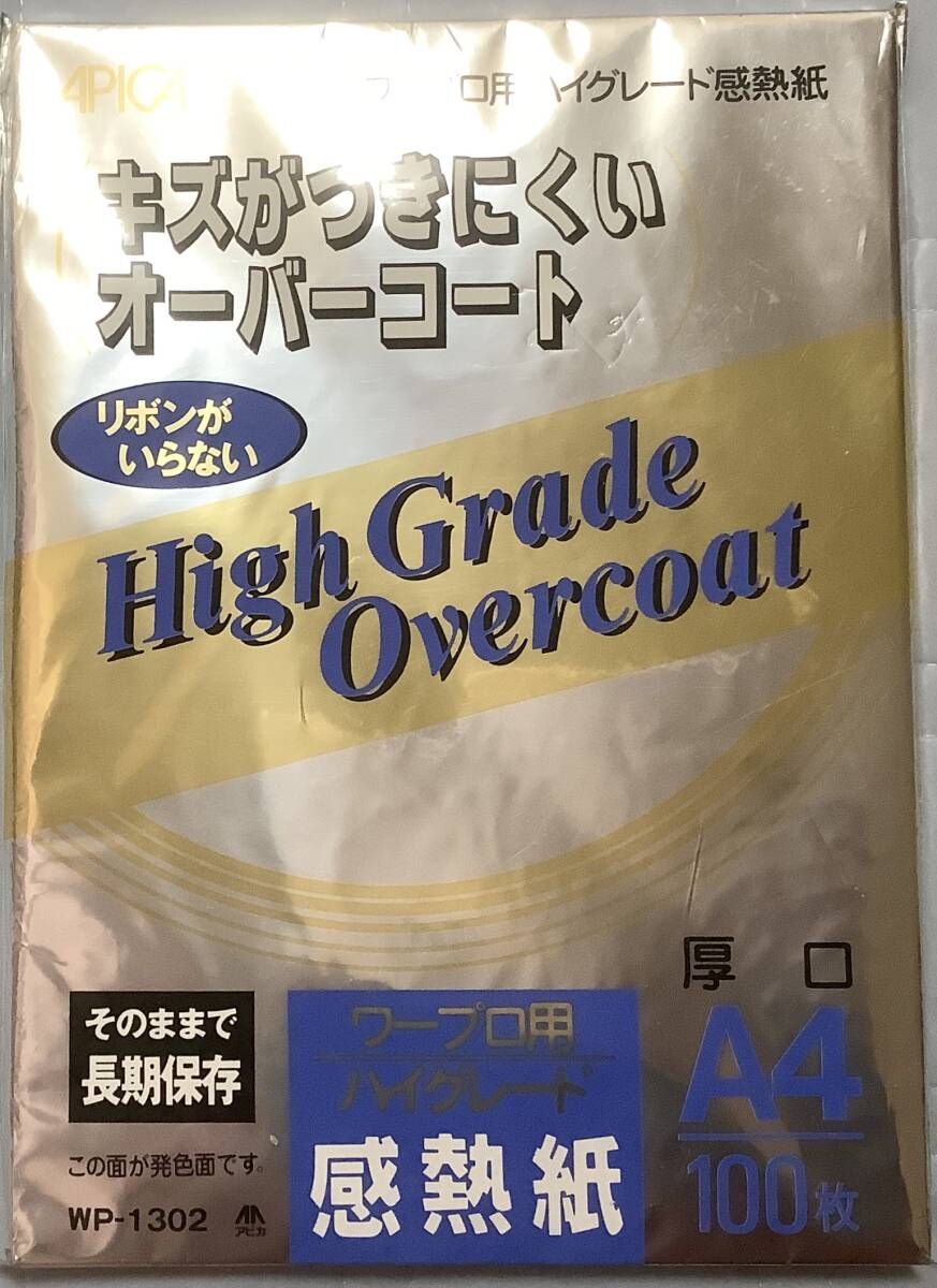 - ワープロ用 ハイグレード 感熱紙 厚口A4100枚 リボン不要 アピカ/送230〜