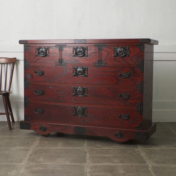 - IZ94955N★飛鳥民芸家具 車箪笥 欅 箪笥 チェスト 整理タンス キャビネット 和箪笥 和家具 装飾 金具 伝統工芸 ケヤキ 収納 国産 民芸家具