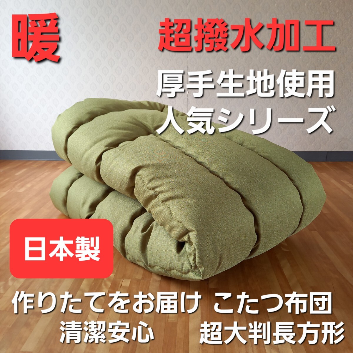 - ボリューム 厚掛け 超撥水加工 超大判長方形 こたつ布団 コタツ こたつ掛 清潔 安心 日本製 グリーン(羽毛布団 掛け布団 敷き布団 枕)
