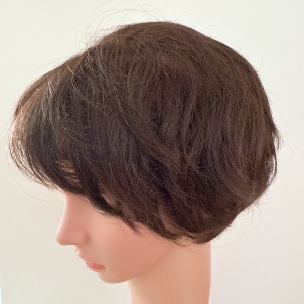 - WG3-1 人毛100 ハンドメイドウイッグ 簡単装着 フルウイッグ 自然色 カールショート ボリュームアップ 白髪隠しにも