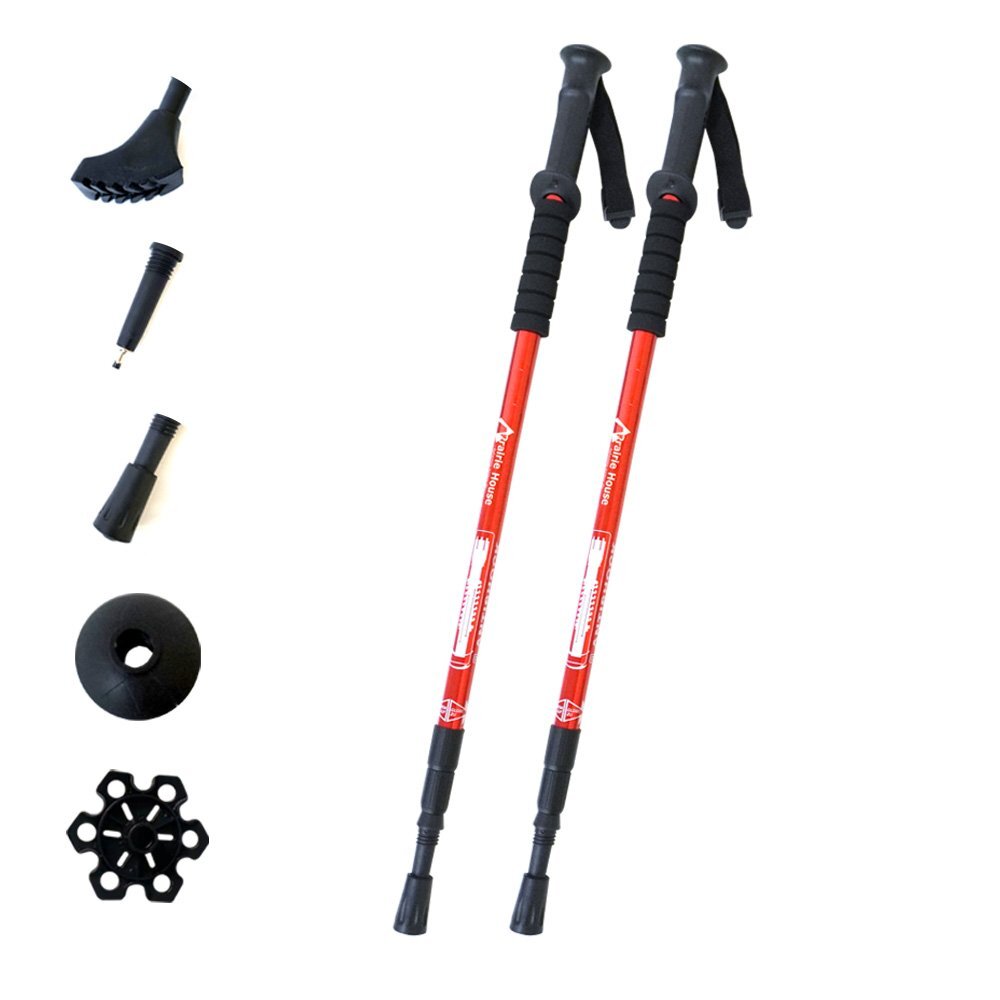 - Prairie House トレッキングポール アンチショック 2本セット アルミ合金 軽量 伸縮式 収納袋 登山 ハイキング アウトドア レッド XO847R