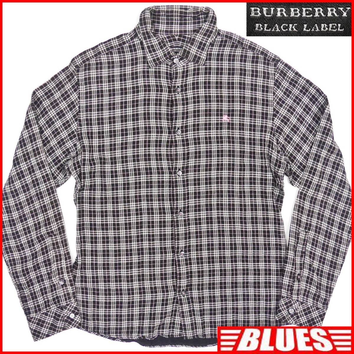 - 即決★BURBERRY BLACK LABEL★メンズM 廃版 チェックシャツ バーバリーブラックレーベル 2 黒 ピンク 三陽商会正規 ナイト刺繍 長袖