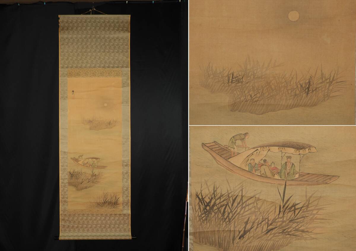 - 模写 谷文晁 (舟人物画) 紙本 合せ箱 掛軸 骨董 絵画 書 古物