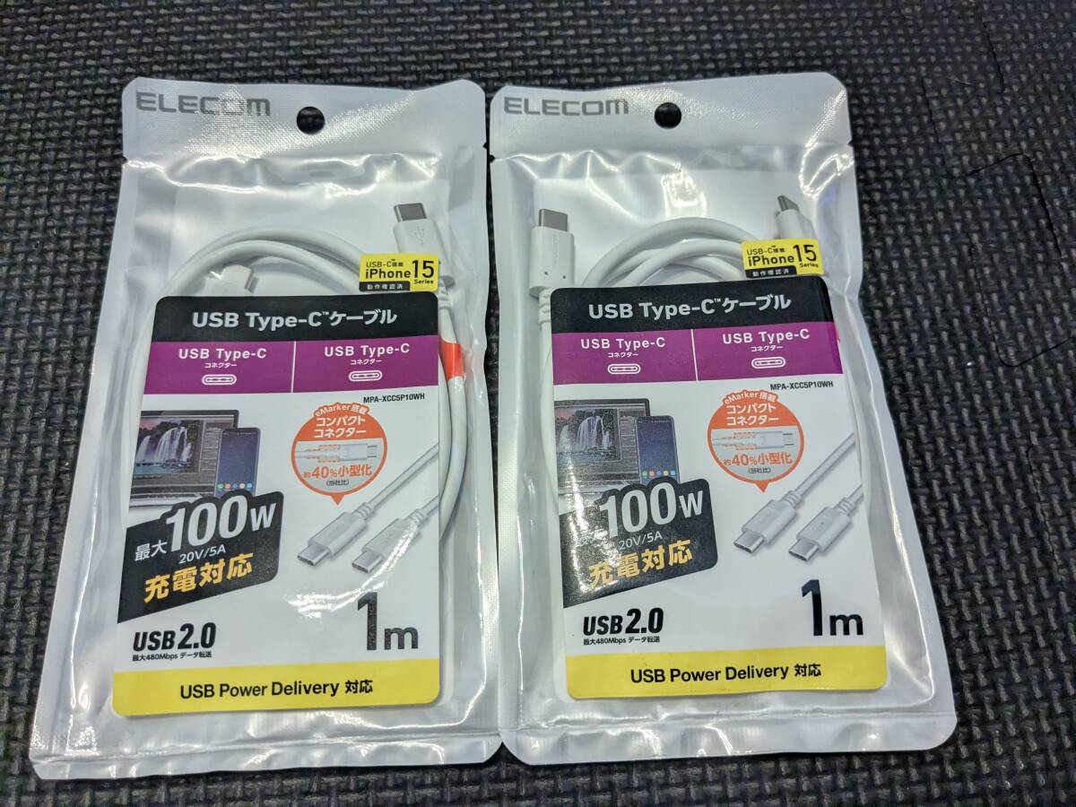 - ◎0710u0734 ELECOM MPA-XCC5P10WH USB Type-Cケーブル 1.0m 最大100W充電対応 2個セット