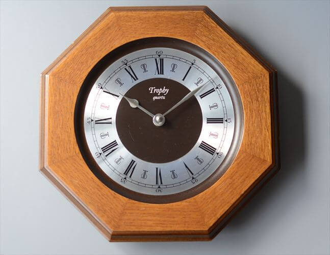- ドイツ製 Trophy 木製 オクタゴンフレーム 壁時計 ウッド オクタゴナル 壁掛け時計 ヴィンテージ クロック アンティーク ic0081