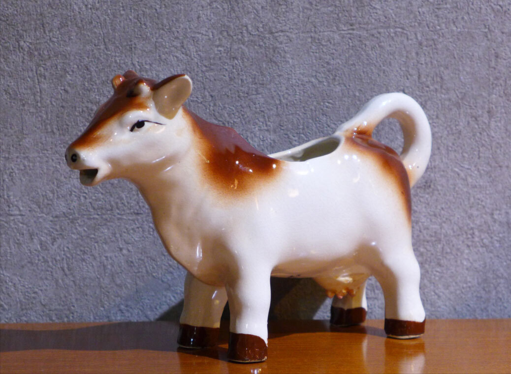 - 当時物 日本製 アンティーク ビンテージ 牛型 ポッド ミルクピッチャー 水注 検/昭和レトロ花入置物じょうろ