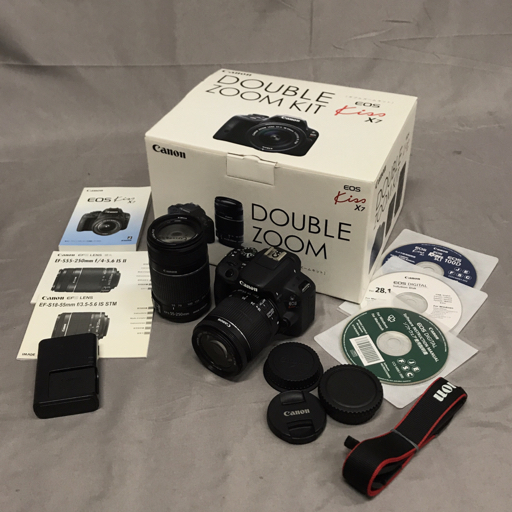 > 1円 Canon EOS Kiss X7 EF-S 18-55mm 55-250mm 一眼レフ デジタルカメラ キャノン 光学機器 通電動作確認済み C251235