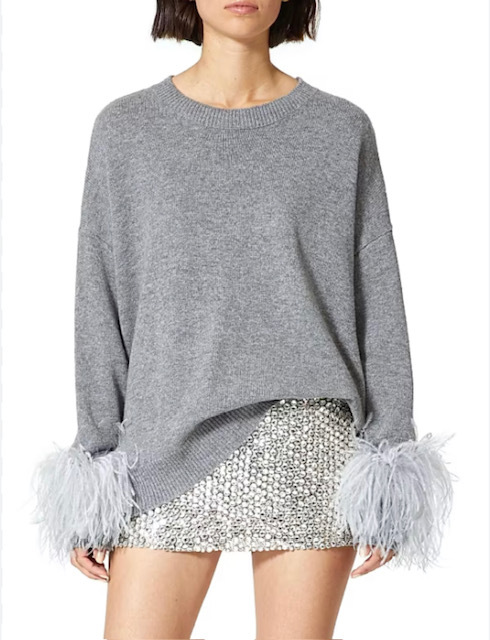 > ☆二点落札で送料無料!2A48【美品】ヴァレンティノ バージンウール フェザートリム ニット セーター オーバーサイズ S グレー レディース