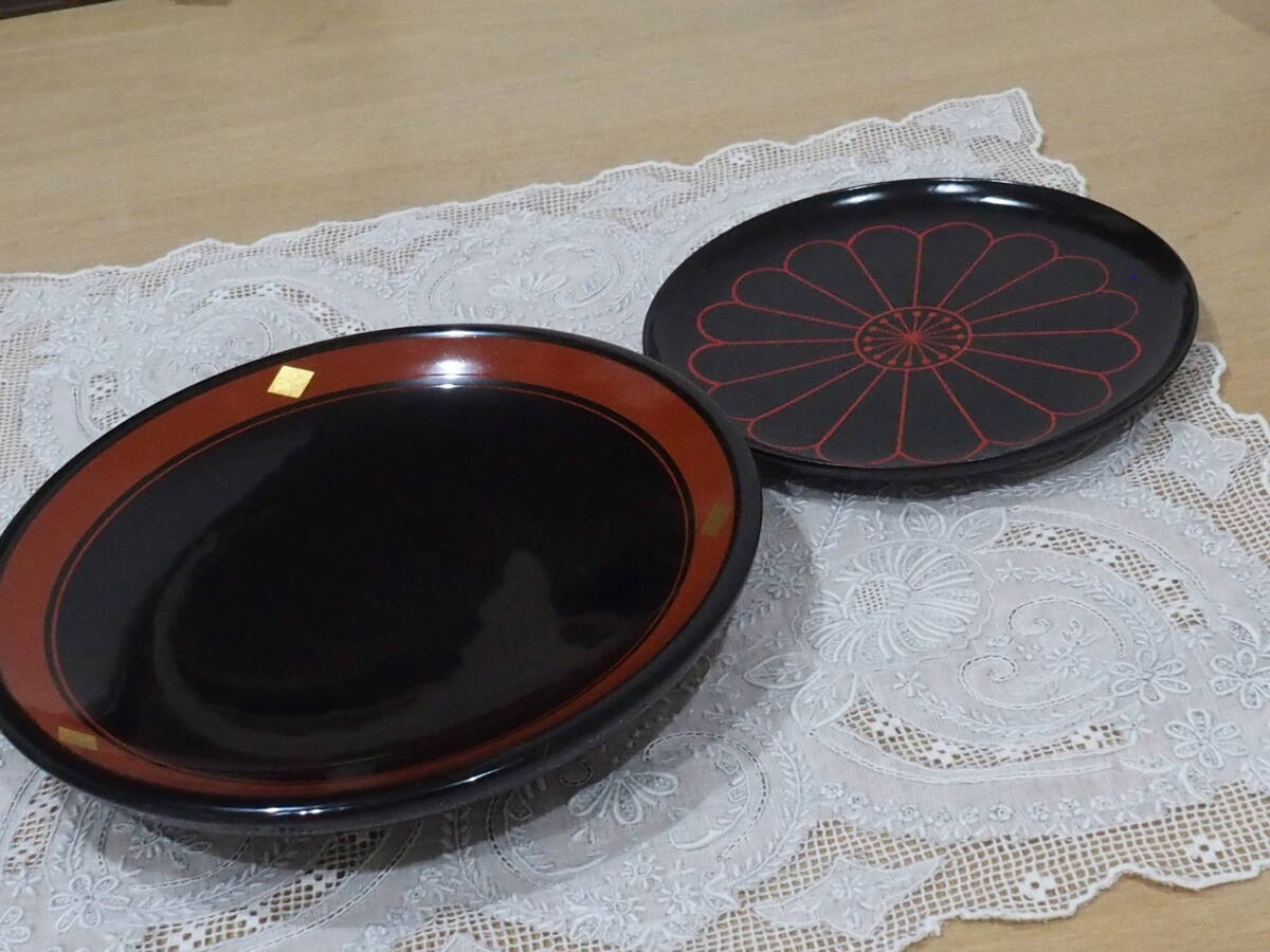 - 秀衡塗(丸三漆器 子持丸 銘々皿 )象彦(菊 銘々皿)各1枚 未使用保管品