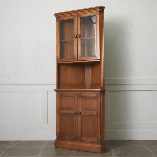 - IZ95959N★Ercol コーナーキャビネット ガラス 飾り棚 エルム 食器棚 ブックケース 書棚 木製 本棚 カップボード アーコール ヴィンテージ