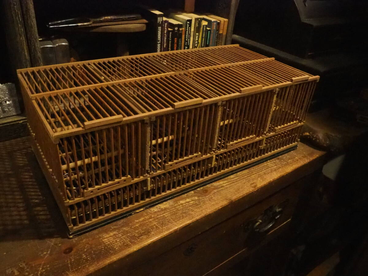 - 【竹製の4連鳥かご】バードゲージ古道具アンティーク骨董インテリア野鳥セキセイインコ籠インダストリアル文鳥ガーデニングバスケット