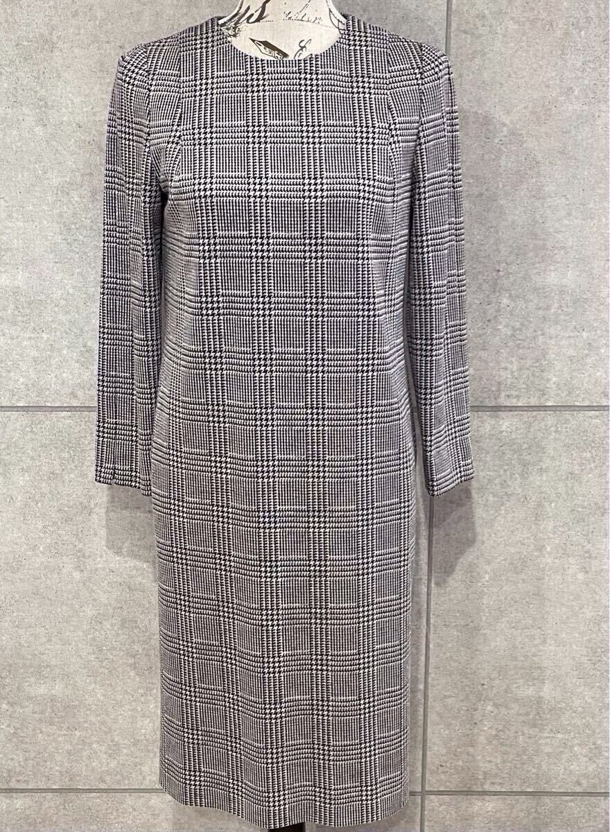 - 上質高級! 日本製 NEMIKA ネミカ レリアン ウール混 長袖 ワンピース 千鳥格子柄 グレー系 7サイズ レディース 送料込 新規×
