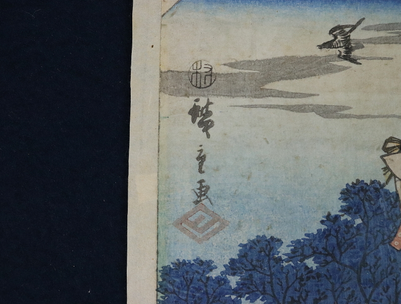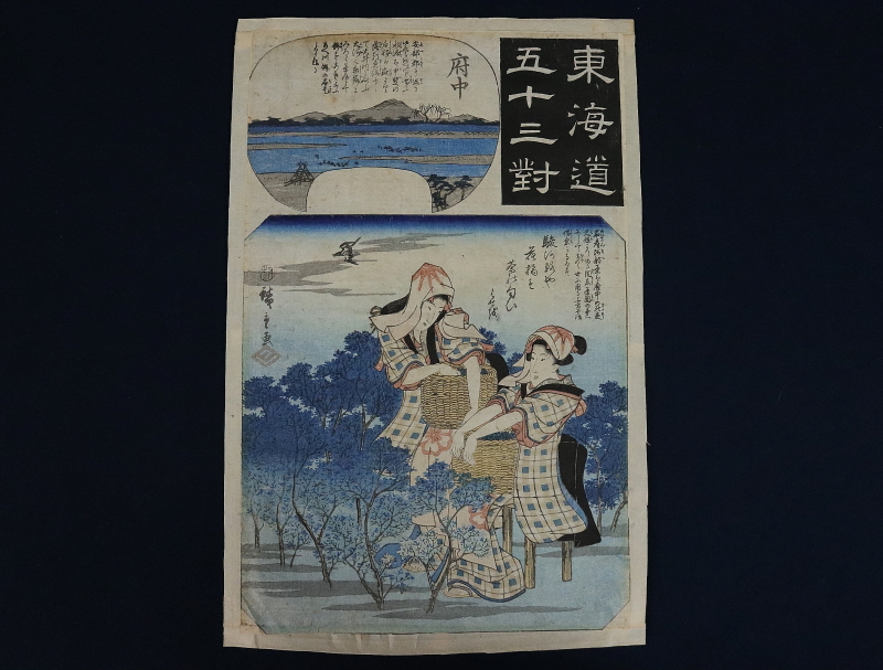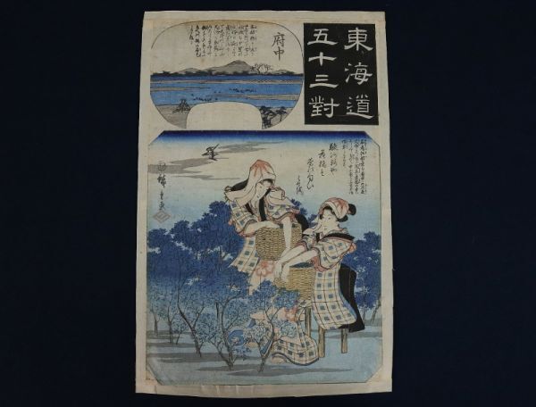 - 11029■【真作】初代歌川広重 「東海道五十三対 府中」 木版 浮世絵 江戸時代 藤広重 マクリ