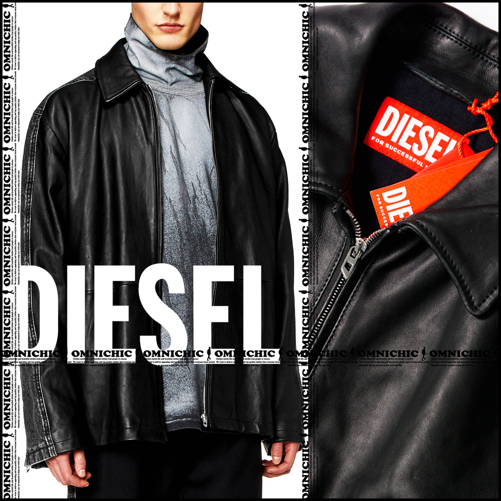 > 幻の伊製L-STOLLER■新品【DIESEL】ディーゼル雰囲気抜群のハイブリットモデル/ブラックラムレザー×デニムオーバージップジャケット48羊革