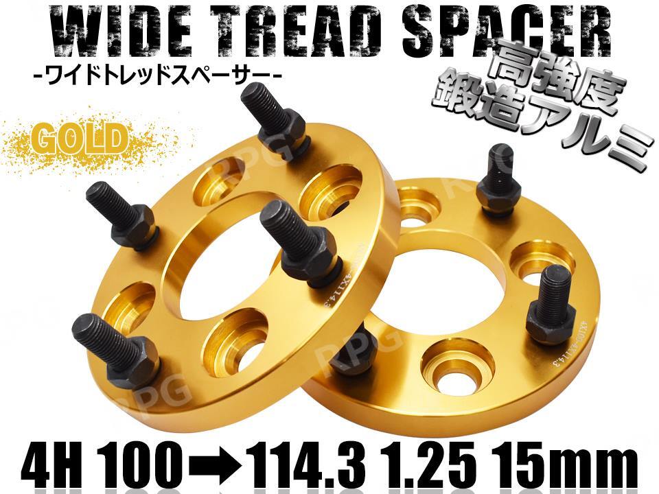 - PCD100114.3変換 ワイドトレッドスペーサー 2枚組 4H 1.25 15mm ゴールド