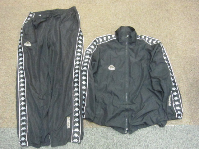 - KAPPA カッパ 90sヴィンテージ ナイロンジャージ上下セットアップ メンズL 黒 ウインドブレーカー ナイロンジャンパー&パンツ10049