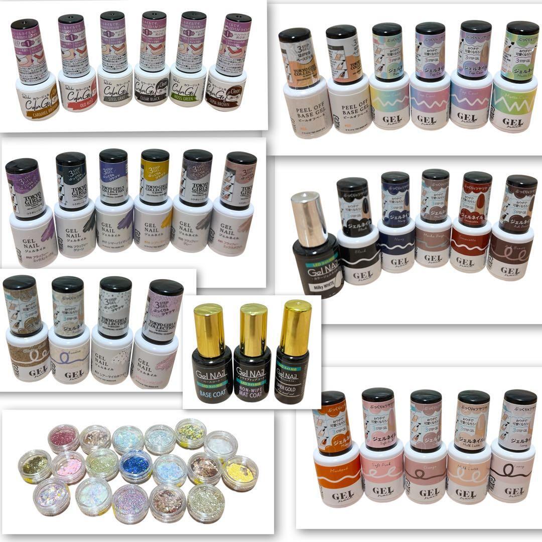 - 【36本+グリッター18色まとめ売り】 ジェルネイル+ベース系ダイソー・セリア・キャンドゥ/IDATEグリッター付き