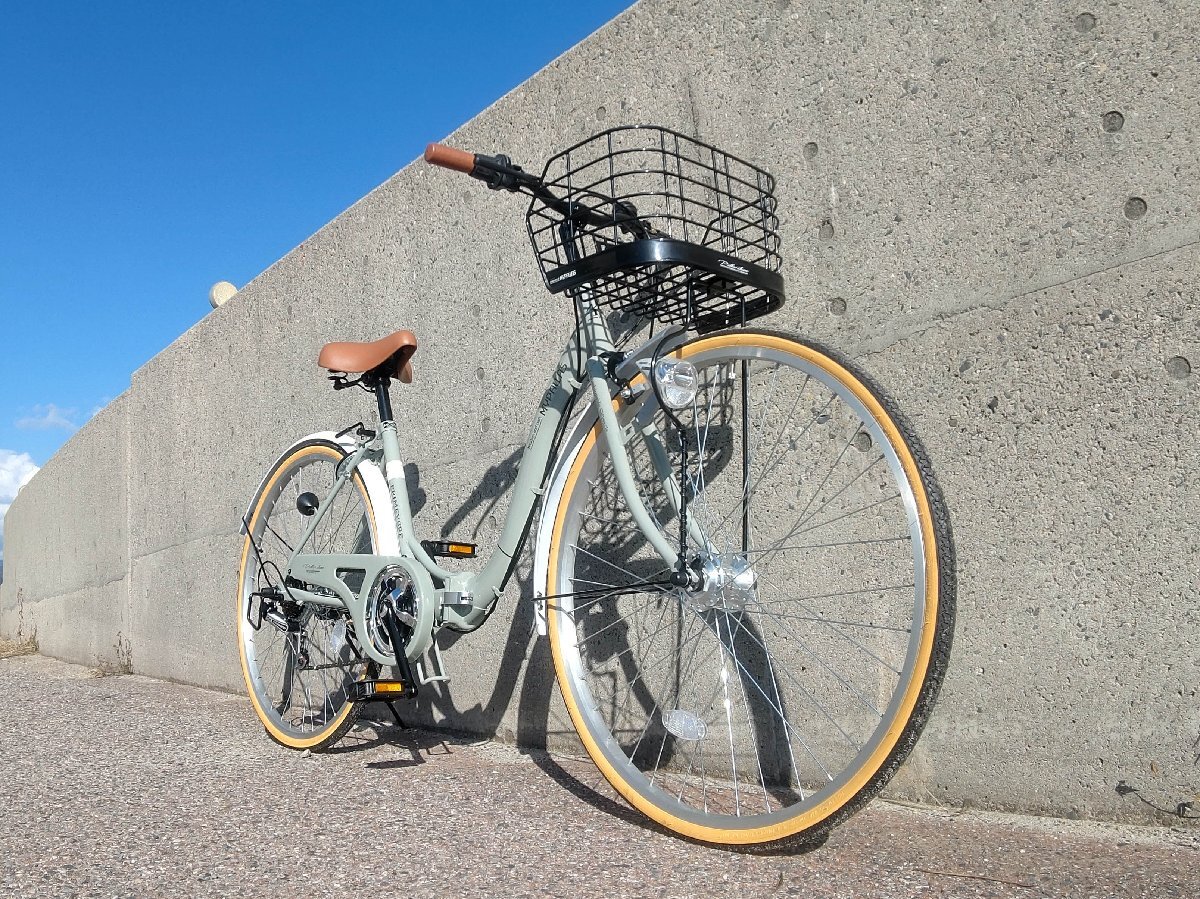 - 送料無料 折り畳み自転車 26インチ シマノ製6段変速ギア バスケット 自動点灯LEDオートライト リング錠 PL保険加入 アッシュヴェルデ 新品