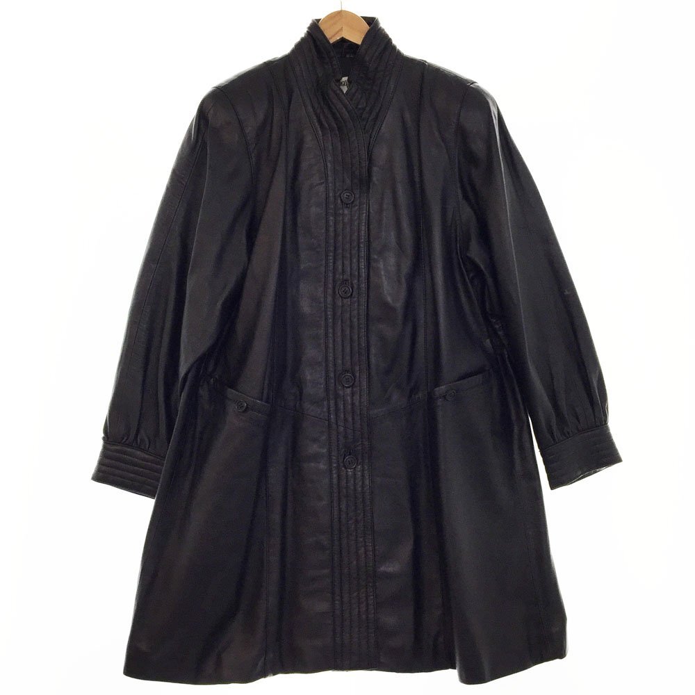 - ★超美品 ANGEL LEATHER エンジェルレザー 長袖 レザーコート サイズF レディース ブラック 肩パッド W7609 アウター ジャケット 2BB/93925