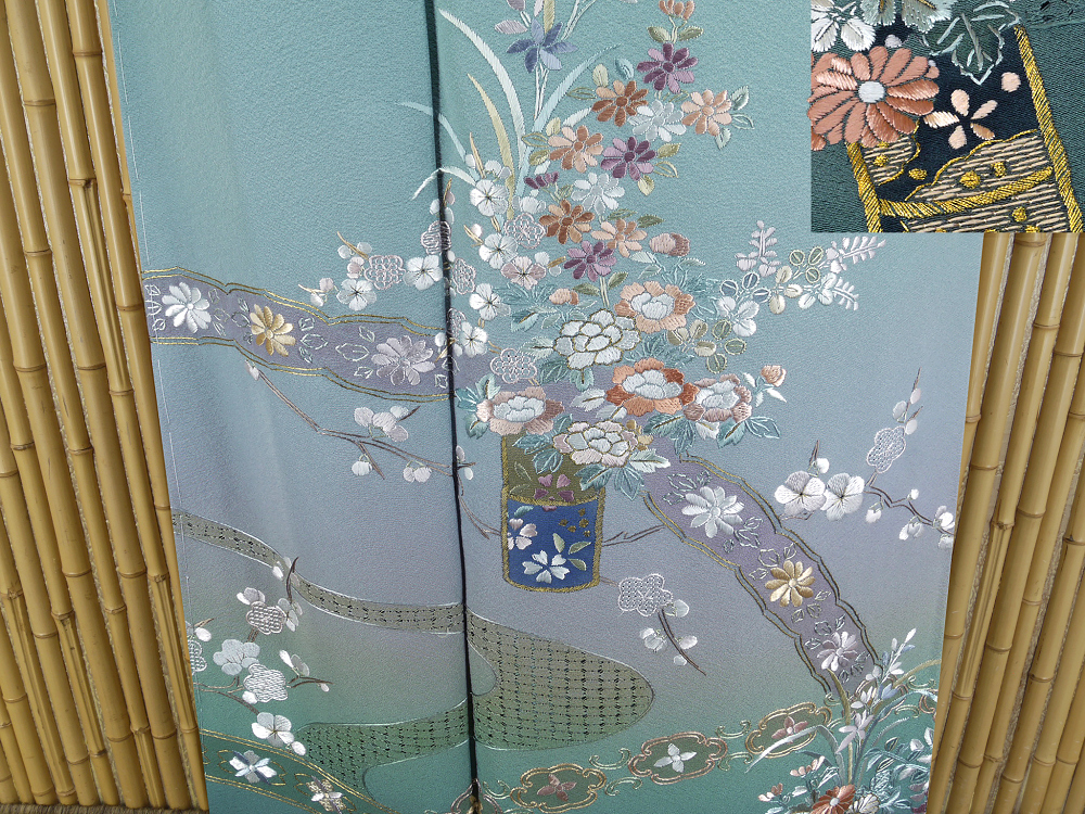 - 【京かんざし】579★三大刺繍「汕頭・蘇州刺繍」特選訪問着 総刺繍 躾糸付未着用身丈160 cm裄丈65 cm★即決送料無料!