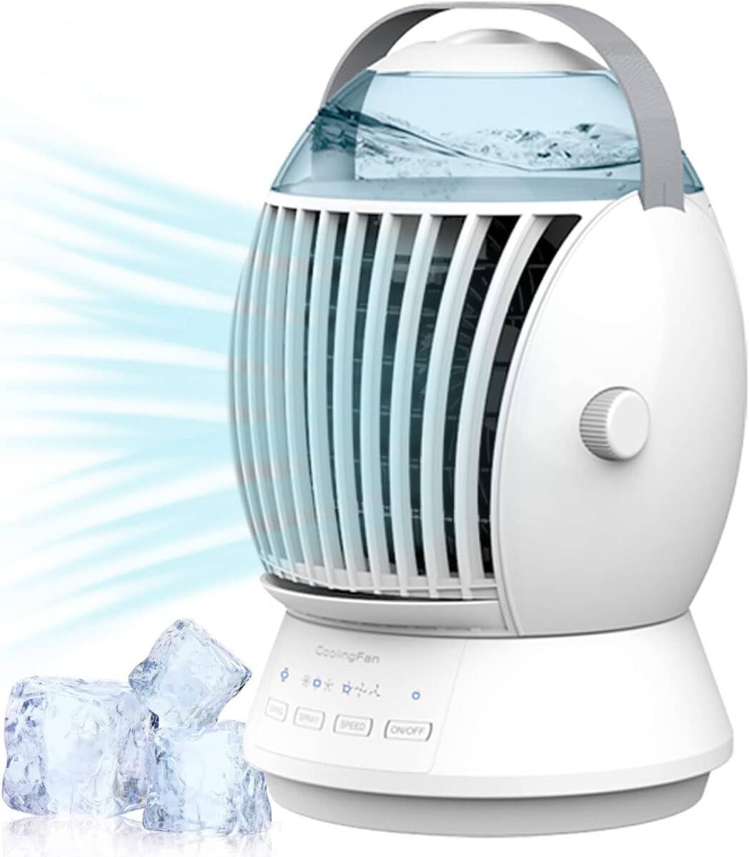 - 冷風機 冷風扇 卓上クーラー 自動首振り ミニクーラー ミニエアコン 風量3段階調節 USB給電 ミスト 500ml 大容量 熱中症