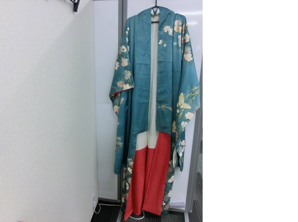 - T【4w-15】【80サイズ】▲正絹 振袖 駒刺繍 流水花鳥文 暈し染め 金銀彩/着物 和装 女性和服/※傷・汚れ有