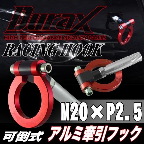 > DURAX正規品 レッド 赤 けん引 フック 汎用 牽引フック トーイングフック M20×P2.5 可倒式 脱着式 折りたたみ式 軽量 ドレスアップ
