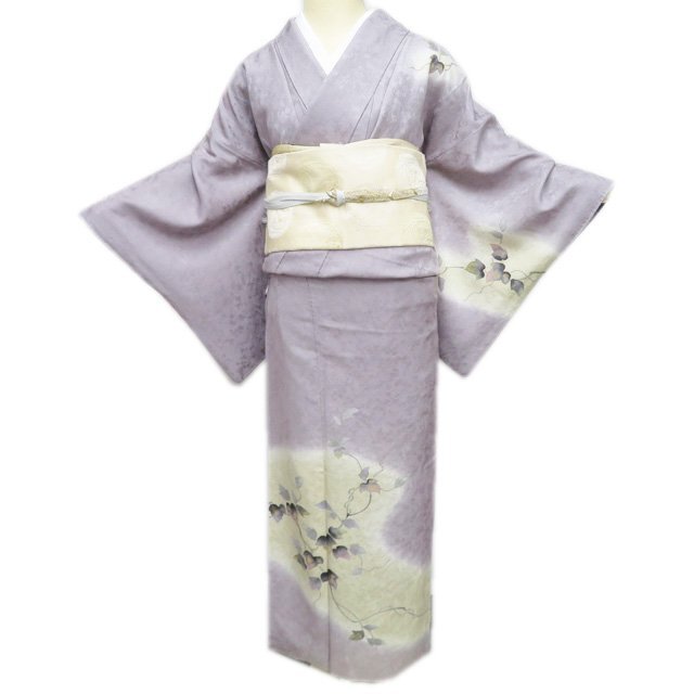 > 付下げ 付け下げ 訪問着 着物 中古 正絹 袷 フォーマル 蔦の図 暈し 灰みがかった薄紫色 身丈156cm 裄65.5cm M きもの北條 A1283-6