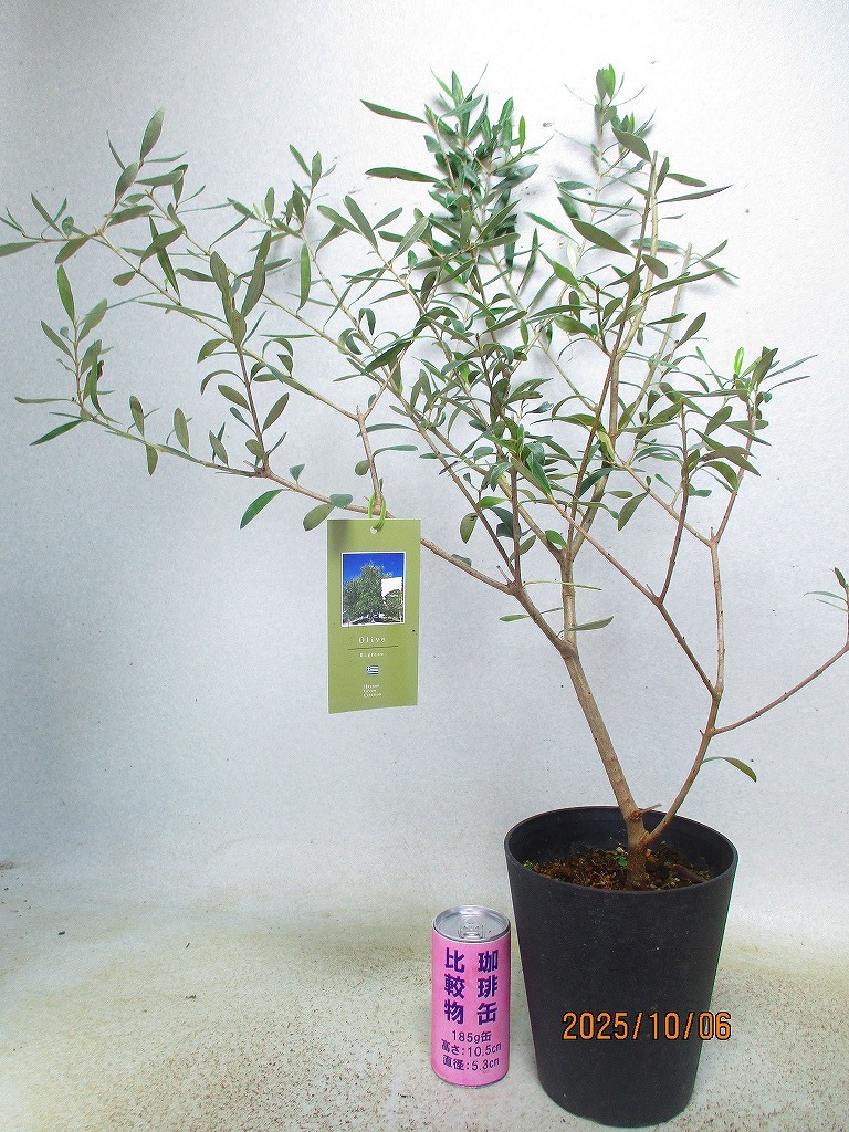 - [野風苗木流通]オリーブの苗木 エルグレコ(10372黒丸プラ鉢)全高:66㎝※同梱包は「まとめて取引」手続厳守※120サイズ*送料明記