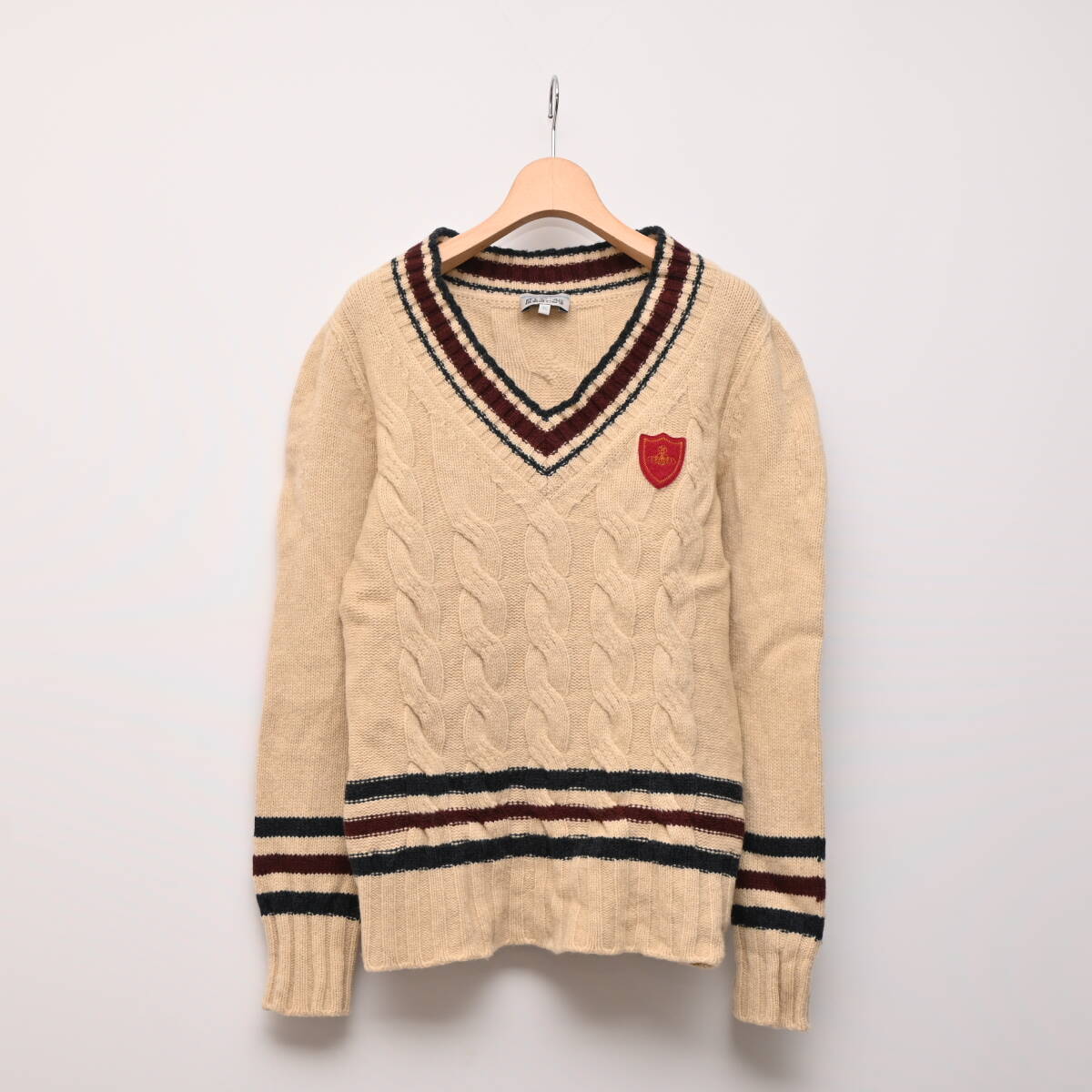 > Vivienne Westwood MAN ヴィヴィアンウエストウッドマン チルデンニット スクールニット 46 ベージュ Vネック オーブ セーター GA3099