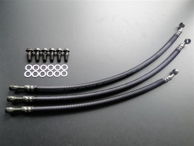 > 8926■Z400FX(E1~E3) ブレーキホース黒フルセット(9点)★シングルディスク用※ジョイント無し★上側ホース全長420mm