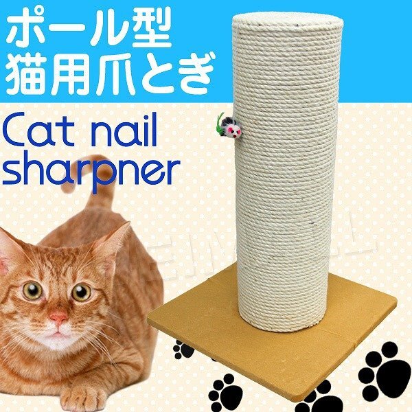 - 猫用爪とぎ ポール型 おもちゃ付き 麻素材 丈夫 省スペース スリム 猫 お手入れ 爪とぎ 爪磨き ストレス発散 ポール 麻 ねこ ネコ 爪研ぎ