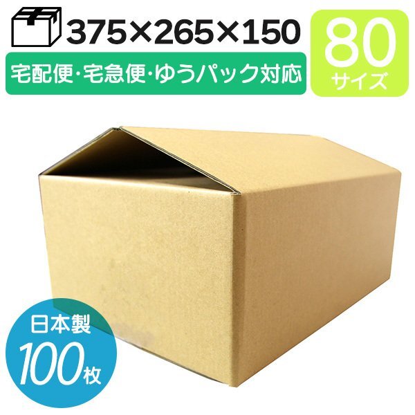 > 【日本製】ダンボール 段ボール 80サイズ (375×265×150) 100枚 茶色 引越し 配送 梱包 段ボール箱 無地 ゆうパック 宅急便 宅配便 対応