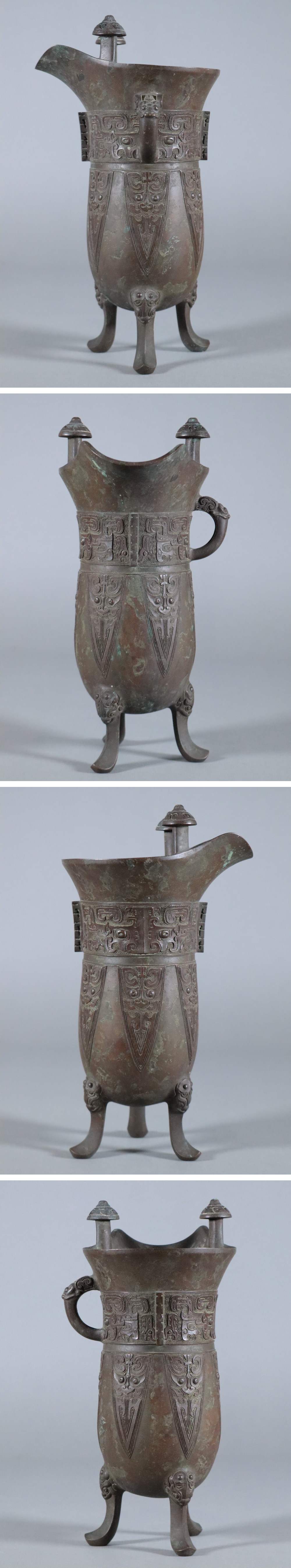 - 亀文堂 三代 波多野正平 / 青銅 銅製 獣面 饕餮紋 爵 置物 / 金工美術 花器 花瓶 秦蔵六 神祭器 時代物 骨董品 古美術品 / 高さ28,6cm