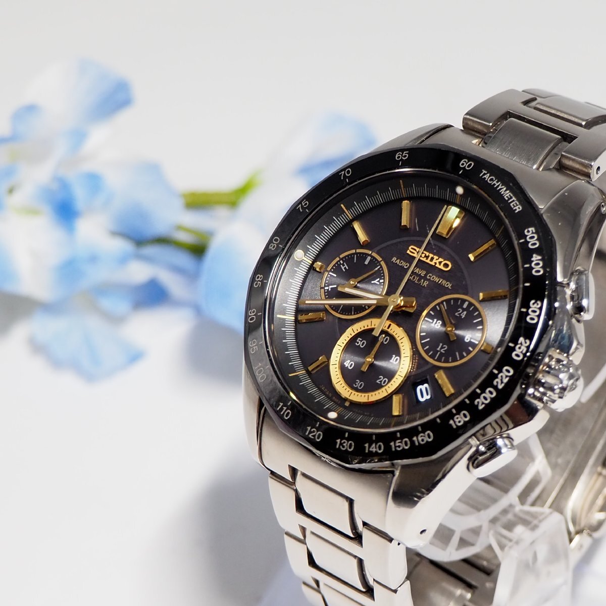 ★★★★ セイコー SEIKO 電波ソーラー クロノグラフ チタン デイト メンズ 腕時計 H365 中古★★★★
