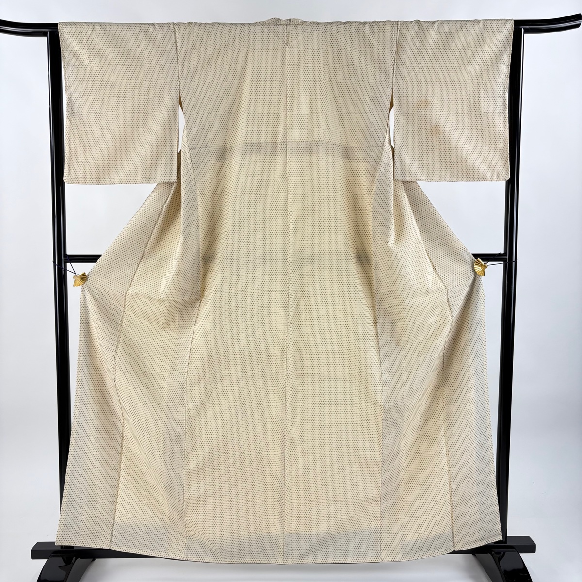 - 紬 身丈161cm 裄丈63.5cm S 袷 十字絣 ベージュ 正絹 秀品 【中古】