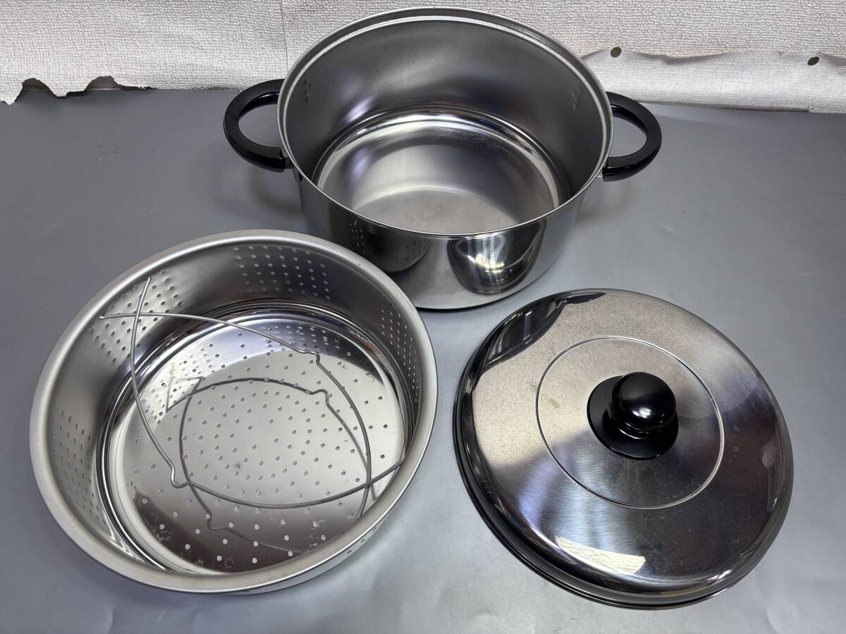 - d4886◆両手鍋/多用途鍋 ゆでむしくん◆直径 27cm 中子付