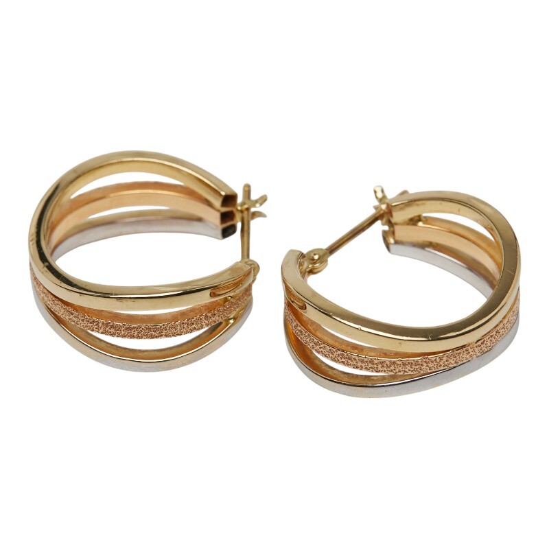 - K14YG イエローゴールド スリーカラー フープピアス レディース 中古