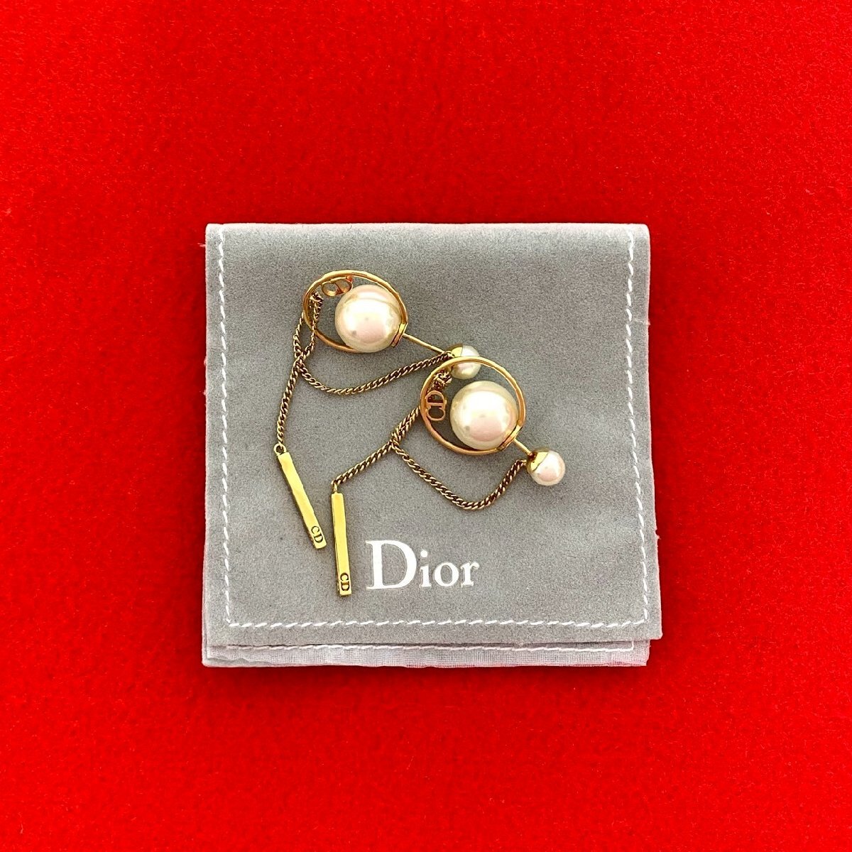 > 極 美品 希少品 袋付き Christian Dior クリスチャンディオール CD ロゴ 金具 チェーン ピアス アクセサリー 小物 ゴールド 120-2